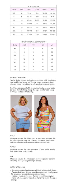 The Bambi Top might be our fave top we've ever designed! With a multi-coloured under-bust band and shoulder-straps, paired with a flexible bust wrap feature, this top not only looks incredible, but truly allows you to get the perfect fit. And these colours!? They'll turn heads!